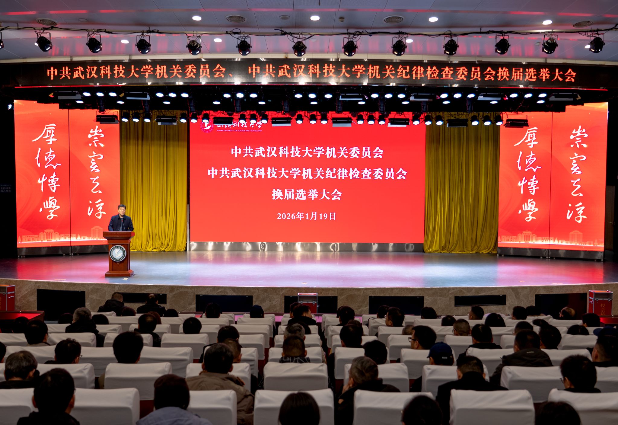 1月19日下午,学校机关党委在青山校区碧园会堂召开换届选举大会,会议由机关党委书记郑永松主持。