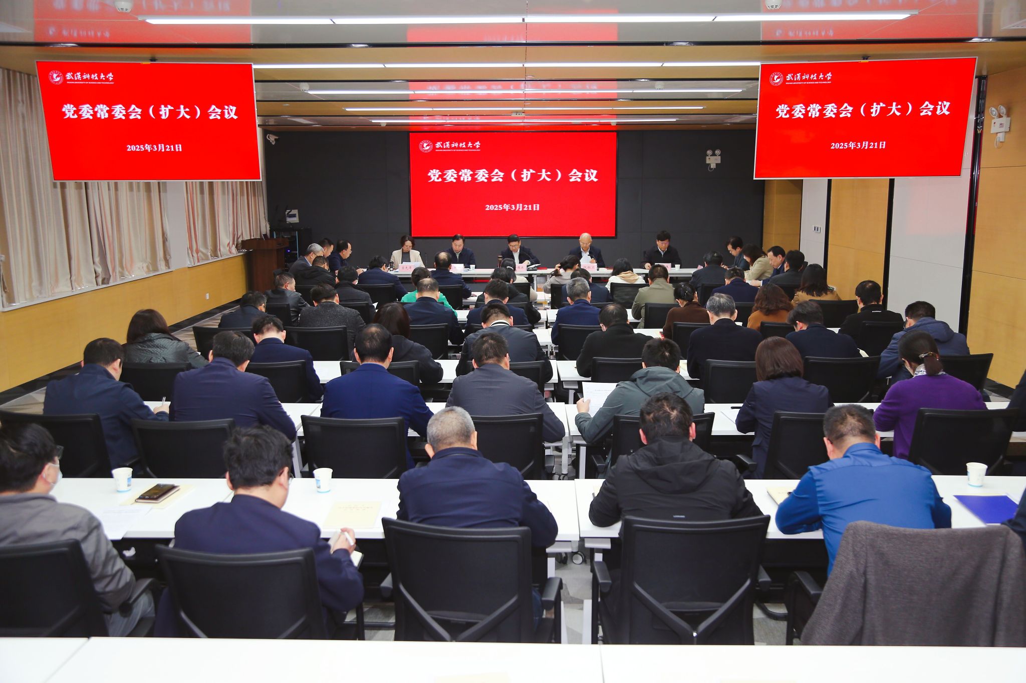 武科大网讯 3月21日,学校召开党委常委会(扩大)会议,学习习近平总书记在贵州、云南考察时关于深入贯彻中央八项规定精神学习教育的重要指示精神,传达中央和省委关于深入贯彻中央八项规定精神学习教育的相关文件和会议精神,审议通过《中共武汉科技大学委员会关于在全校开展深入贯彻中央八项规定精神学习教育的实施方案》。校党委书记徐雁冰主持会议并讲话。全体校领导,学校党的建设领导小组成员单位主要负责人,党群部门主要负责人和各二级党组织书记参加会议。